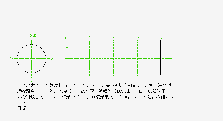 探傷中發(fā)現(xiàn)缺陷以后,要測定缺陷位置(主要判斷缺陷在焊縫中所出位置,三維尺寸,長、寬、高,根據(jù)回波和位置判斷缺陷性質(zhì))當(dāng)量,指示長度。