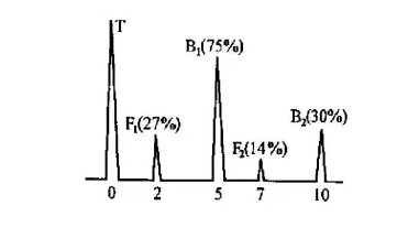 在原始狀態(tài)下,用蘸水的濕布觸摸人工缺陷,此時(shí)波幅變化情況如圖2所示??梢姡抵翝M幅的75%(-l.6dB), F1 降至滿幅的27%(-0.9dB);B2降至滿幅的30%(-4.4dB), F2降至滿幅的14%(-1.7dB)。在此情況下,通波及缺陷波較原始狀態(tài)均有所下降,說(shuō)明這是能量衰減所致。